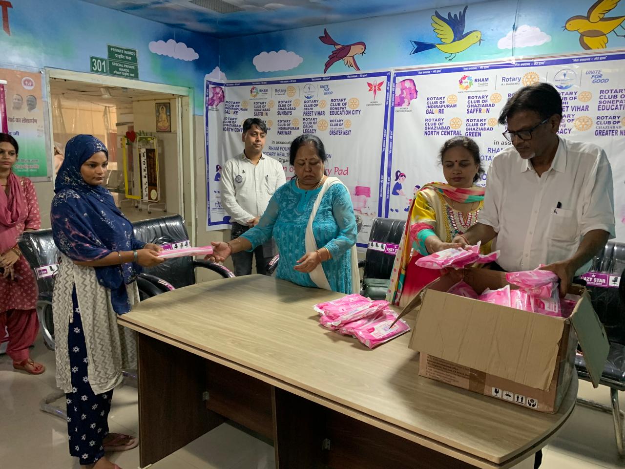 आरएचएएम फांउडेशन व रोटरी क्लब इंदिरापुरम गैलौर और रोटरीक्लब सैफरोन व अन्य सहयोगी संस्थाओं के सहयोग से जिला महिला चिेकित्सालय में महिलाओं को सैनेटरी पैड का वितरण किया गया। कार्यक्रम के दौरान महिलाओं को बीमारियों के प्रति भी जागरूक किया गया1 कार्यक्रम की मुख्य अतिथि अस्पताल की सीएमएस अलका शर्मा रही। इस दौरान महिलाओं में स्वास्थय को लेकर भी जनजागरूकता फैलाने का आहवान किया गया।