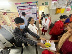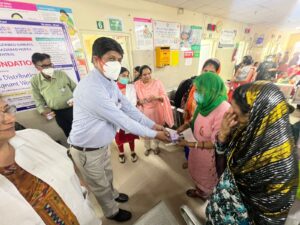 गाजियाबाद। आरएचएएम फाउण्डेशन की ओर से गुरुवार को जिला महिला चिकित्सालय में फल वितरण कार्यक्रम का आयोजन किया गया। इस दौरान इमरजेंसी वार्ड, महिला प्रसव व जनरल वार्ड में भर्ती मरीजों व उनके सेवकों के बीच फल का वितरण किया गया।