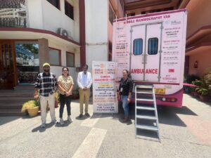 मैमोग्राफी कैंप में आरएचएएम फाउण्डेशन के सदस्यों ने लोगांे को कैंसर के बारे में जागरूक किया। मोबाईल मैमोग्राफी बस की क्षमतानुसार 20 महिलाओं का चेकअप किया गया।