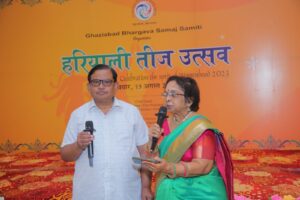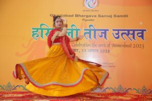 श्री उमेश भार्गव और श्रीमती नलिनी भार्गव ने सभी को संबोधित करते हुए सभी को तीज महोत्सव की शुभकामना दी। श्रीमती ज्ञान भार्गव ने हरियाली तीज महोत्सव की विशेषता के बारे में जानकारी दी। इसके बाद अभिषेक भार्गव ने शिवस्तुति प्रस्तुत की। गोविंदपुरम निवासी आरोही, शिखा भार्गव, अंजली भार्गव, वर्षा भार्गव, प्रद्न्या भार्गव ने शानदार नृत्य प्रस्तुत कर सभी का मन मोह लिया। श्रीमती नीता भार्गव, श्रीमती नीलू और दिवाकर भार्गव ने सभी विजेताओं को सर्टिफिकेट देकर पुरस्कृत किया। मधु भार्गव ने कविता पाठ किया।