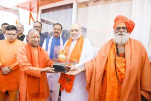 पीठाधीश्वरों संग गृहमंत्री अमित शाह और सीएम योगी ने किया संगम स्नान, जयकारों से गूंजा संगम नोज