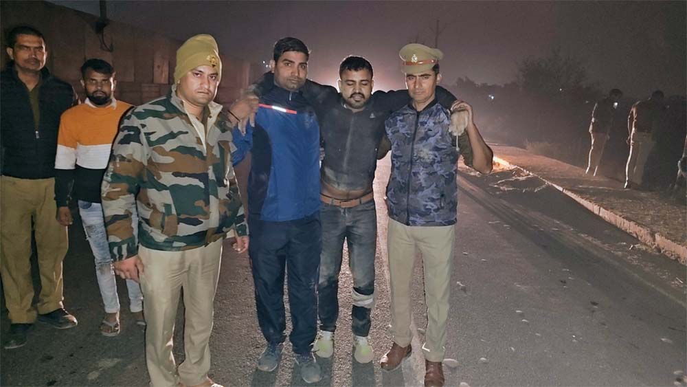 आत्मरक्षार्थ पुलिस टीम द्वारा इन पर फायरिंग की गई जिसमे एक बदमाश घायल हो गया जबकि दुसरे बदमाश को पकड़ लिया गया। घायल आरोपी ने अपना नाम शान मोहम्मद उर्फ अमन निवासी दौलत नगर, पावी सादकपुर थाना ट्रॉनिका सिटी गाजियाबाद उम्र 24 वर्ष बताया तथा बाइक चालक गिरफ्तार आरोपी ने अपना नाम फैसल उर्फ रेहान निवासी दौलत नगर, पावी सादकपुर थाना ट्रॉनिका सिटी गाजियाबाद उम्र 25 वर्ष बताया। पुलिस ने घायल आरोपी अमन से एक तमंचा 315 बोर व 02 ज़िंदा कारतूस और लूट हूई रॉयल एनफील्ड हंटर बाइक बरामद की है।