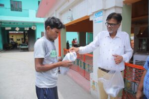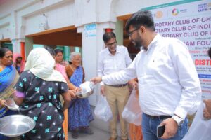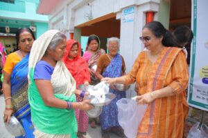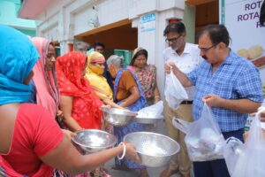 खाने के पैकेट्स लेने के बाद मरीजों ने सदस्यों का आभार जताया। मुख्य अतिथि रोटरी क्लब डिस्ट्रिक्ट 3012 की डीजी 2025-26 डॉ. अमिता मोहिंद्रू, एकेएस ने अपने हाथों से कुष्ठ आश्रम में रहने वाले लोगों को खाने के पैकेट्स बांटे।