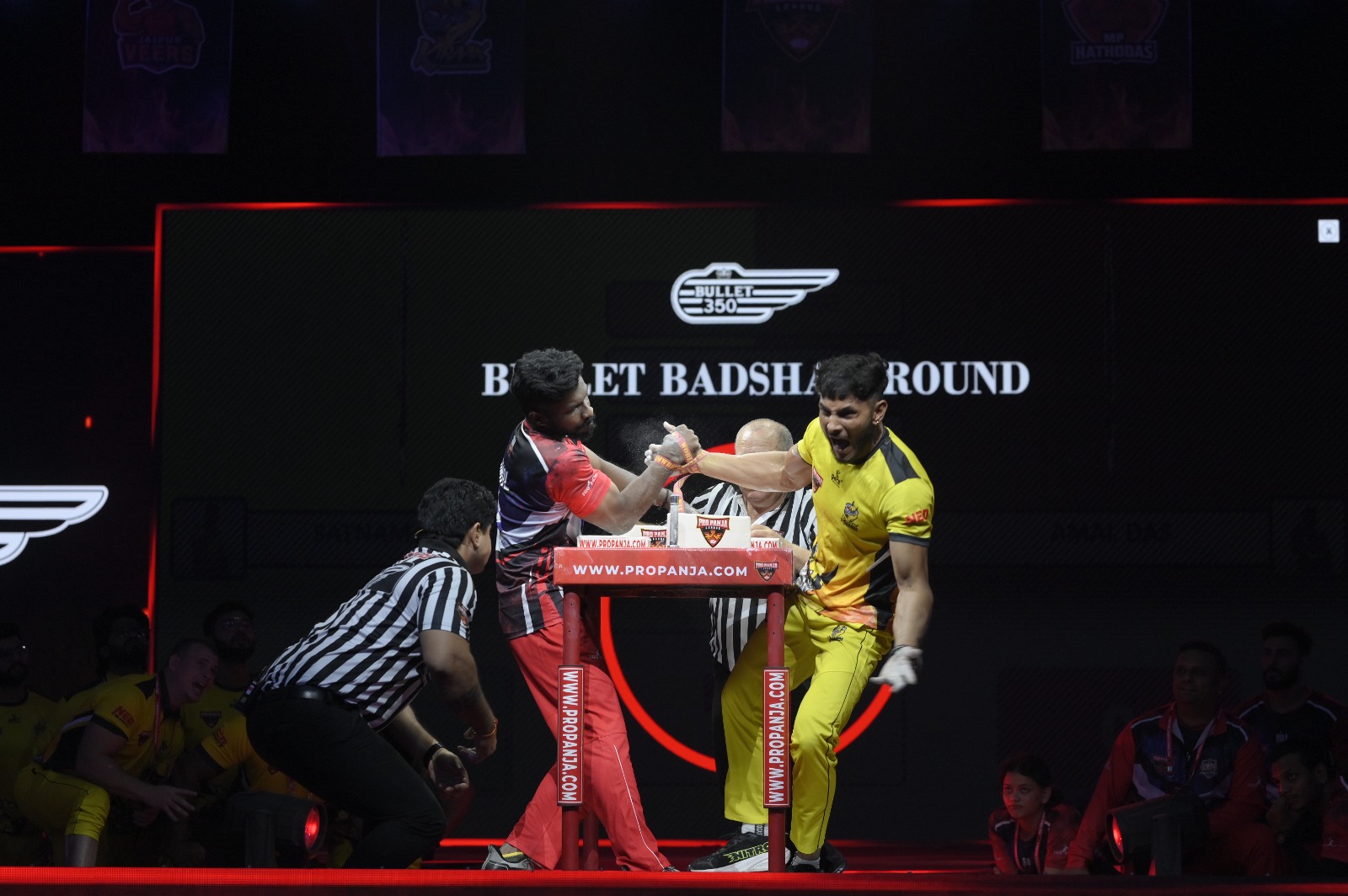मेन कार्ड फिक्सचर 2 में किरााक हैदराबाद के आब्हास राणा ने 100+ किग्रा वर्ग में रोहतक राउडीज़ के अमित चौधरी को 5-0 से हराया और 2 बोनस अंक भी हासिल किए। 70 किग्रा वर्ग में सतनाम सिंह ने रोहतक राउडीज़ के अमल दास को 10-0 से हराकर नया लीग रिकॉर्ड बनाया — 0.13 सेकंड में पिन। इस प्रदर्शन के बाद उन्हें “बुलेट बादशाहों का बादशाह” का ख़िताब दिया गया।