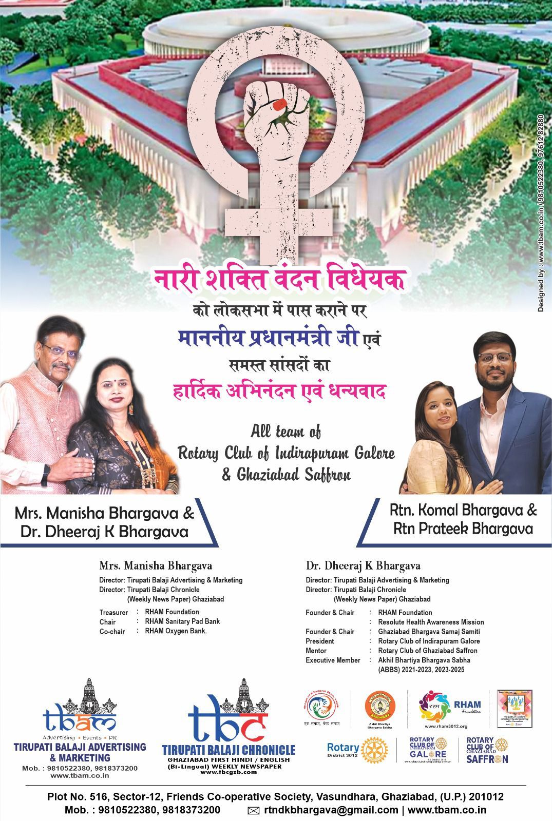 नारी शक्ति वंदन विधेयक के पारित होने पर सभी को बधाई
