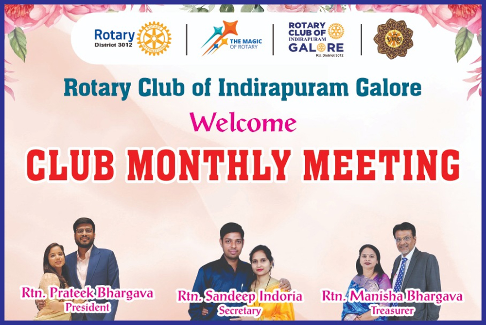 गाजियाबाद। रविवार को रोटरी क्लब गाजियाबाद सेफरोन, रोटरी क्लब इंदिरापुरम गैलोर की मासिक कार्यकारिणी बैठक का आयोजन किया जाएगा। बैठक के दौरान रोटरी क्लब गाजियाबाद सेफरोन...