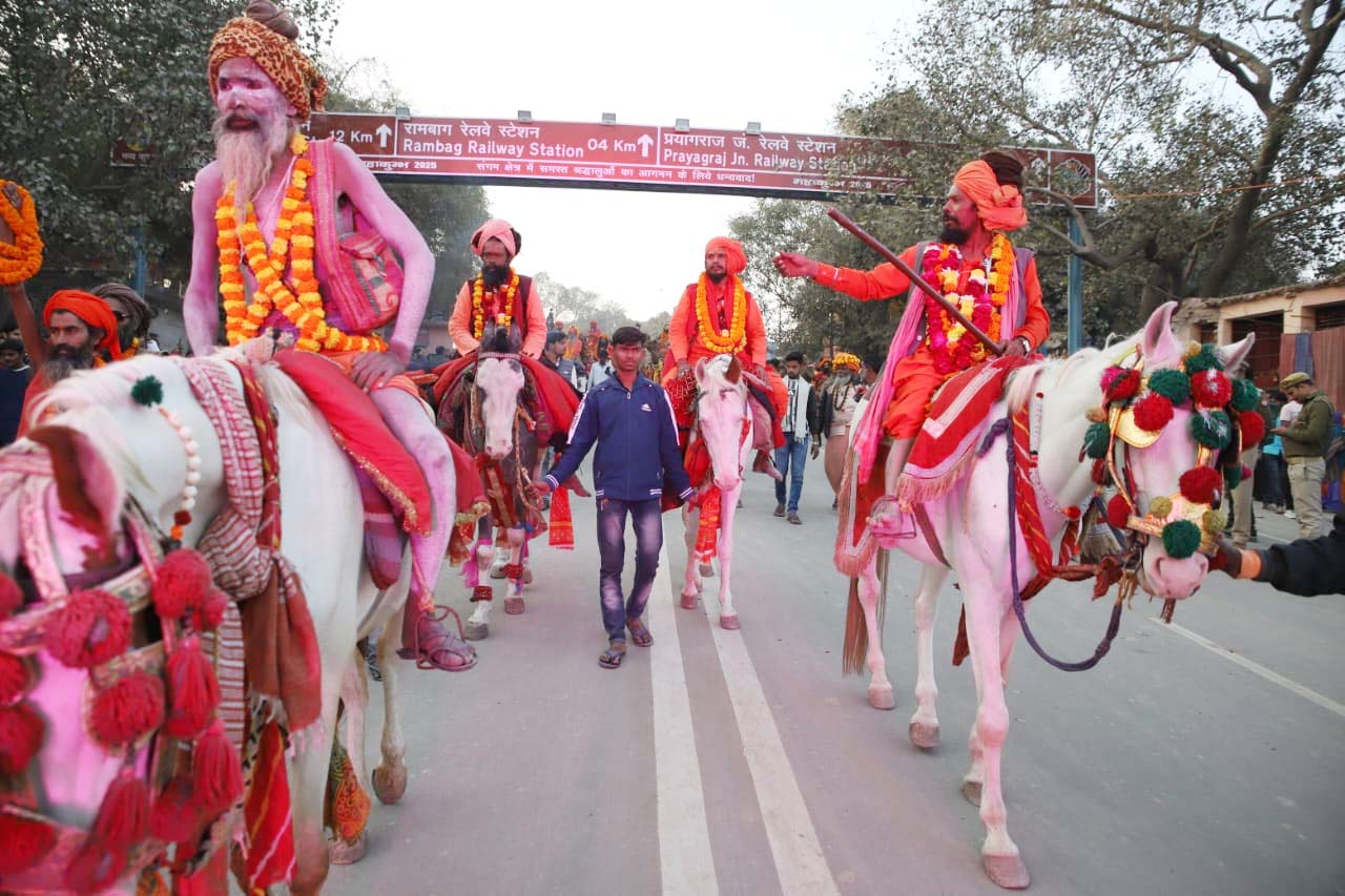 छावनी प्रवेश यात्रा का जगह जगह श्रद्धालुओं और महाकुम्भ प्रशासन ने पुष्प वर्षा के साथ किया स्वागत महाकुम्भ नगर । प्रयागराज में जनवरी 2025 में...