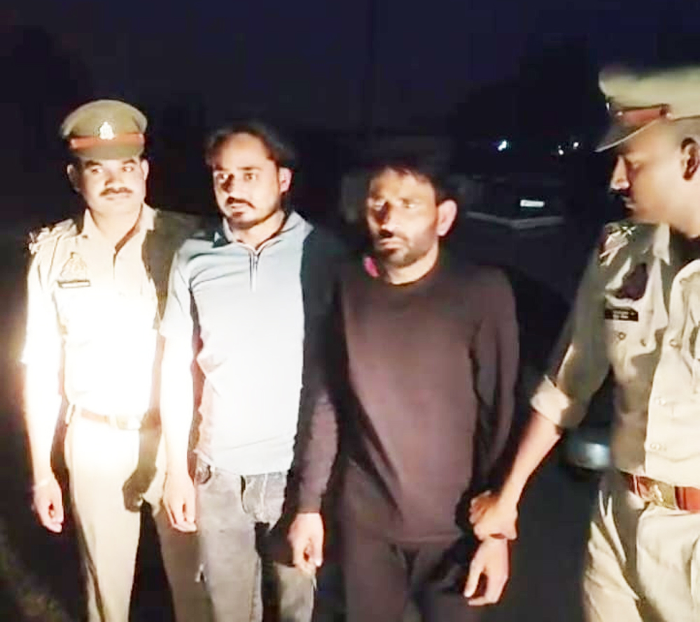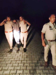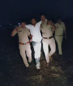 गाजियाबाद। थाना निवाडी पुलिस द्वारा अपराध रोकथाम के लिए एमपी सिखैडा सारा रोड पर गश्त की जा रही थी । गश्त के दौरान पुलिस द्वारा गोकशी करने की फिराक में होंडा सिटी कार में मौजूद 05 अपराधियों की घेराबंदी की गई । अपने आप को घिरता देखकर होंडा सिटी कार सवार अपराधियों ने पुलिस टीम पर जान से मारने की नीयत से फायर किया गया । पुलिस द्वारा की गई जवाबी आत्मरक्षार्थ फायरिंग में दो बदमाश पुलिस की गोली लगने से घायल हुए व दो अन्य गिरफ्तार इस दाैरान अन्य एक बदमाश अंधेरे का फायदा उठा कर मौके से फरार हो गया ।